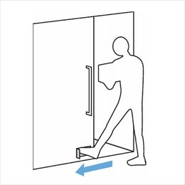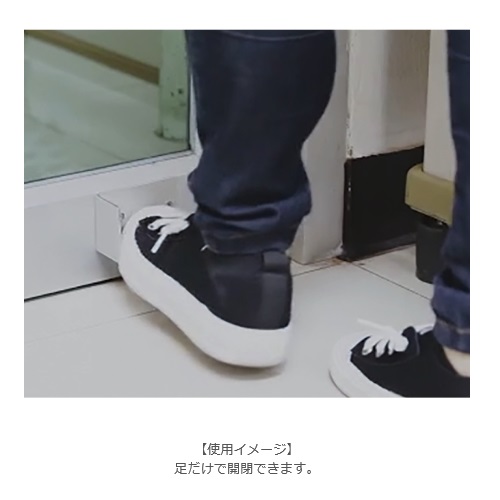 手でハンドルに触れずに足で扉を開閉できます。