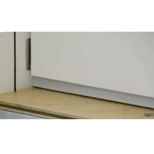 ドアが閉まると起動し、タイトゴムが下がってドア下の隙間をふさぎます。 ドアを閉める時に、床を引きずらない新機構。 吊元側のトリガーが10mm押し込まれると起動し、ダンパーを効かせながらボトムレールがゆっくり下がる構造です。 [サイズ]1200mm [対応戸幅]900〜1200mm