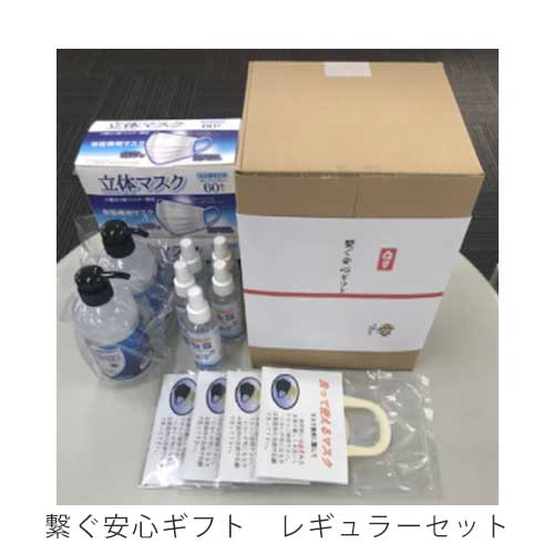 感染予防商品をセットにしたギフトをご用意しました。 すぐに使える便利な感染予防グッズの詰め合わせです。 普段会えない家族や友人。お世話になった得意先様や恩師へ。 思いやりをこめたギフトを贈りませんか。 [セット内容] ・不織布3層マスク(60枚入)×2箱 ・洗って使えるウレタンマスク ホワイト×2枚 ・洗って使えるウレタンマスク ブラック×2枚 ・アルコール除菌ジェル75%×2本 ・アルコール除菌すスプレー携帯用100ml×5本
