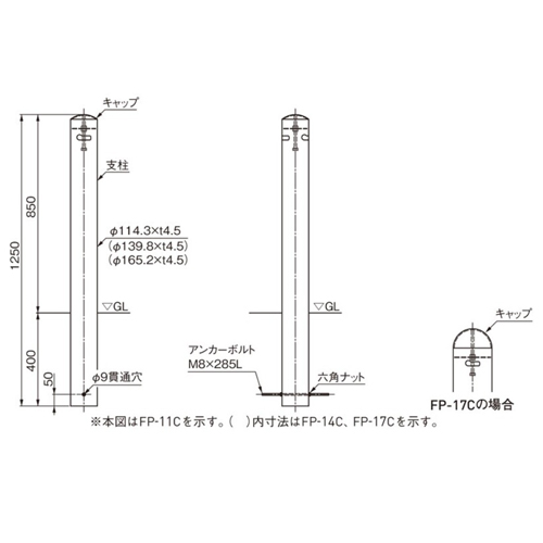 ・充填により本体強度を保証するものではありません。 ・強い衝撃を受けると、基礎ブロックの転倒、アンカーボルトの破壊が生じる場合があります。 ・基礎形状は現場状況に合わせて検討してください。 ・コンクリート・アンカーボルトは別途です。 ・ベースプレートタイプも製作可能です。
