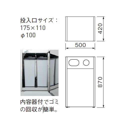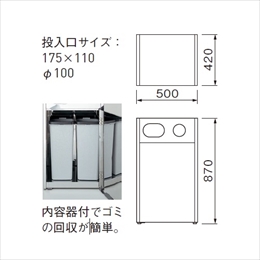 ・屋外用です。 ・片面投入口仕様です。 ・高さ調整ができるアジャスター付きです。 ・内容器付きでゴミの回収が簡単です。 ・内容器材質:PP