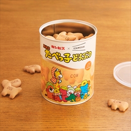 長年愛されている、株式会社ギンビスの「たべっ子どうぶつ」とコラボレーションしました。 従来のたべっ子どうぶつよりも厚焼きで、どうぶつは47種類。 美味しい保存食として、また普段のお菓子としてもお召し上がりいただけます。 厚焼きの香ばしくサクサクとした食感をお楽しみください。 ※保存年数は製造日より起算しています。 [名称]ビスケット [原材料]小麦粉(国内製造)、砂糖、ショートニング、転化糖蜜、加糖れん乳、モルトエキス、食塩、植物油脂/膨張剤、香料、(一部に小麦・乳成分・大豆を含む) [内容量]120g [栄養成分]栄養成分表示1缶(120g)あたり エネルギー523kcal、たんぱく質9.1g、脂質12.2g、炭水化物94.1g、食塩相当量0.9g [アレルギー物質について] 特定原材料:小麦、乳 特定原材料に準ずるもの:大豆 [賞味期限]製造より 5年※製造から6ヶ月以内の商品をお届けいたします。 [1缶サイズ]Φ104×H127mm [保存方法]直射日光および高温多湿な場所を避けて常温で保存してください。