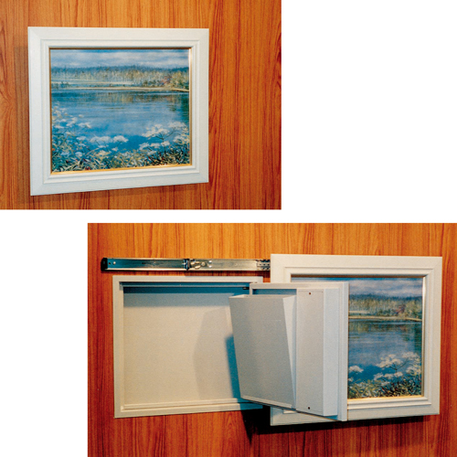 ・壁に埋没する金庫。人目につきにくく壁に固定されているため金庫を持ち去られる危険がありません。耐火性能はありません。