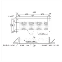既存の換気孔を改修する際に用いる面付床下換気孔です。 [本体重量]520g [材質]SUS304 [仕上]片面:#400研磨