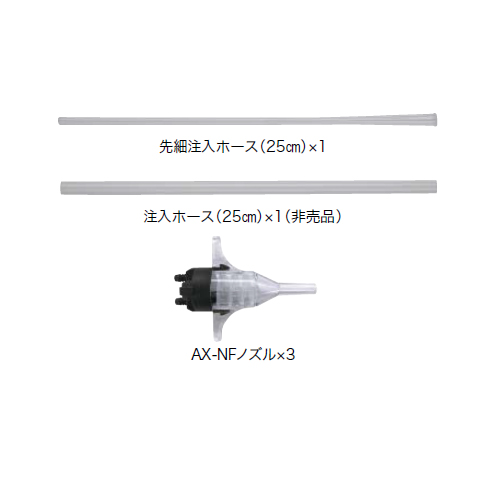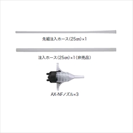 肩にかけて持ち運べる軽量・コンパクトな使い切りタイプ。 2液タイプ初のノンフロンタイプです。 [発泡体積/セット]20〜25L・厚み20で約1m2 [容量]724g [発泡ガス]LPG/DME(ノンフロン) [付属品] 先細注入ホース(25cm)×1、 注入ホース(25cm)×1、 AX-NFノズル×3 [JAIA]F☆☆☆☆