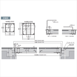 [サイズ]W1:450×W2:428×W3:404×H:50mm [本体重量]4.8kg [材質]アルミ [仕上]アルマイトクリア [耐荷重]モルタル仕様(G):510kgf