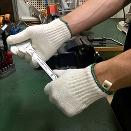 サイコロ印の手袋は、要らなくなった糸くずやワタを原料にして、もう一度糸にしたリサイクルの糸を使用しています。