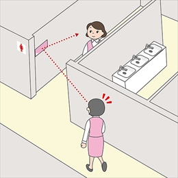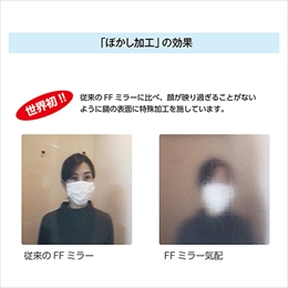 トイレでの衝突防止に効果があり、プライバシーに配慮した「ぼかし加工」が施されたミラーです [品番/呼称]FR27B [取付方法]強力両面テープ [サイズ]W270mm、H120mm [重量]85g [材質]ミラー:ポリカーボネート [像の大きさ(曲率半径)]280R相当