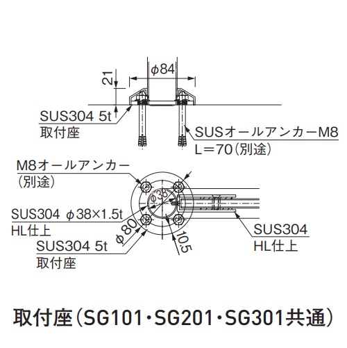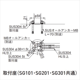 ・アンカー、袋ナット類は同梱されていません。 ・取付アンカーは施工条件にあったものをご用意ください。 ・タイル貼り、石貼り、劣化したコンクリートには、オールアンカー止め では十分な強度が得られない場合がありますので、オプションの床埋め込みタイプのご使用をご検討ください。別途お問い合わせください。