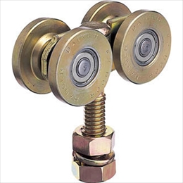 ・軸受部に市販のベアリングを使用した高性能タイプです [適用](2個吊当り)70kg [材質]本体:スチール、戸車:鋳物 [サイズ]81×88×32