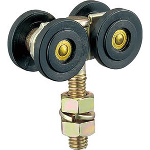 ・車輪はポリアセタール樹脂製です ・使用頻度の高い場合にはベアリング複車をご使用ください ・車の脱輪止めや扉の位置決めには必ず「#3ゴム付戸当たり」を使用してください [適用]70kg(2個吊当り) [材質]本体:スチール、戸車:鋳物 [サイズ]81×88×35