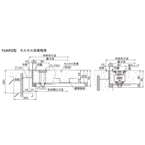 ・防水・防臭効果を損なわないよう、外枠の外面および下面は防水モルタルをしっかり詰めて施工してください。 ・施工時および内蓋開閉時は、パッキン表面内蓋裏側のパッキンの密着面の掃除を行ってください。防水・房州効果を損なうおそれがあります。 ・常時水に浸かっている場所や積雪する場所でのご使用は避けてください。