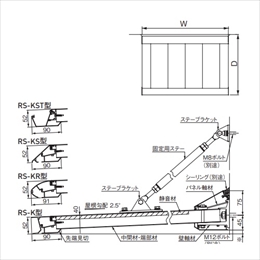 ・ひさし本体の連結がスライド式で取付・施工が簡単にできます。 ・内部に発泡ポリスチレンを装着しているので、雨音・結露が軽減できます。 ・K型は先端角型、KS型はスリム形、KR型は、R形、KST型はスリム樋付きです。
