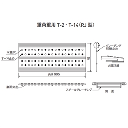 ・表面は滑り止め加工を施した合成ゴムを使用しており、弾力性があり歩行感に優れています。金属製品のようなガタツキや騒音が発生せず静かです。 [色]グリーン [品番/呼称]RJ25-15 [サイズ]溝幅150mm、内幅210mm、長さ995mm、高さ25mm [重量]12.5kg [材質]スチール・合成ゴム [適用荷重]T-2・T-14