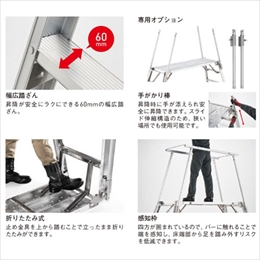 ・ステップ幅は、昇降が安全にできる60mmの幅広ステップです。
