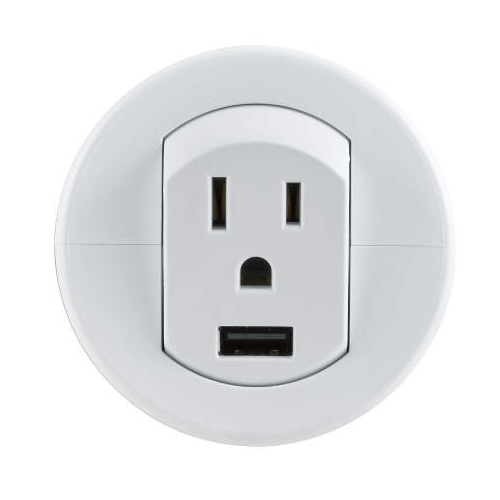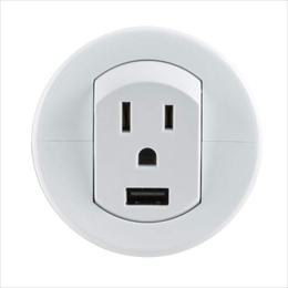使わない時はフラットに収納でき、ほこりがたまりません。 ACアダプタを使わずに、AC100 Vに直接接続で使用できます。 タブレット端末の急速充電も可能です。 USB規格は世界共通の規格のため、変換プラグ、変圧器不要で急速充電できます。 加工穴にワンタッチで取り付けできます。