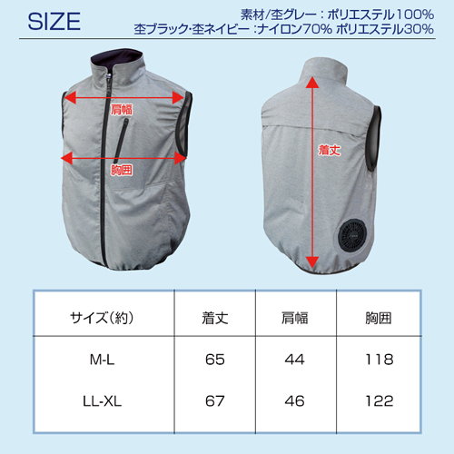 空調ベスト/セット 杢グレー BR-1203 LL-XL