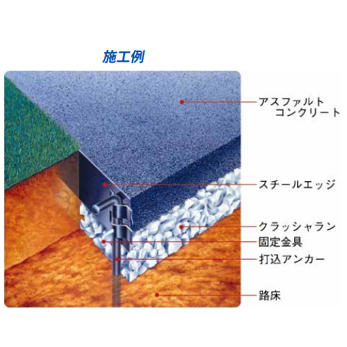 ・舗装用見切り材です。 ・連結部に倒れ防止機能を追加しました。 ・熱膨張等を考慮し、つなぎ目に2mmのスキマをとってあります。 ・アンカー打込孔はエッジの倒れ防止のためきつくしてあります。