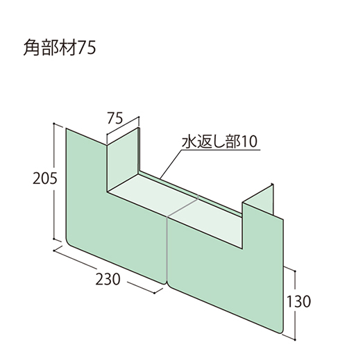 [素材]ポリエチレン樹脂 [対応かかり代]〜75mm [サイズ]H205×L460×水返し部(巾75×立上り10mm) [主な対応サッシ]樹脂サッシ