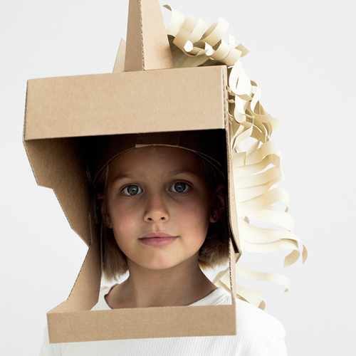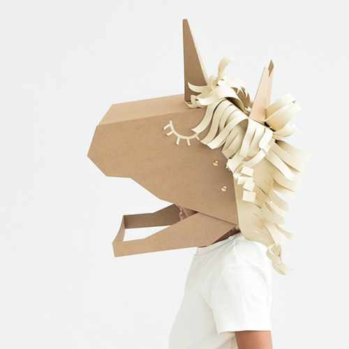 ダンボールで作る、ユニコーンのマスクの工作キット。