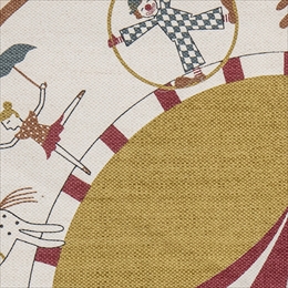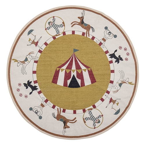 サーカスのイラストが描かれた丸形ラグ。