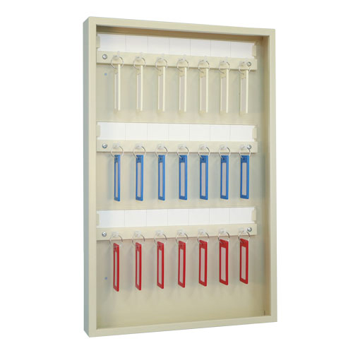 ・扉の付いていないオープンタイプです。 ・テプラ、ネームランド等の18mmテープが使用可能。 ・キーハンガーに整理見出しが付いて必要な鍵が一目でわかります。 ・キーハンガーのフックの形状はFIタイプと同じです。 [材質]スチール [仕上]ポリエステル系粉体塗装 [色]アイボリー [サイズ]H400、間口260、奥行40 [重量]1.1kg