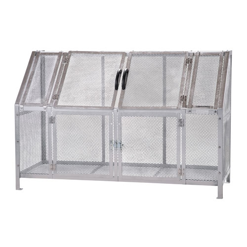 ・屋内・屋外で使用可能な製品です。 ・メッシュ構造ですので臭いがこもらず、集積状況が一目で確認可能な大型くず入れです。 ・ゴミの投棄は上面扉から、回収時には下部の扉からとスムーズな作業が容易にできます。 [材質]スチール(亜鉛メッキ) [サイズ]間口1800×奥行700×高さ1200mm [内容量]約1200L [重量]約85kg
