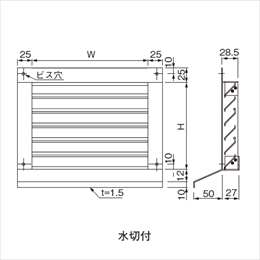[サイズ]H153×W300 [本体重量]490g [材質]アルミ [仕上]アルマイトシルバー・クリアー [有効換気面積(網なし)]204平方センチメートル