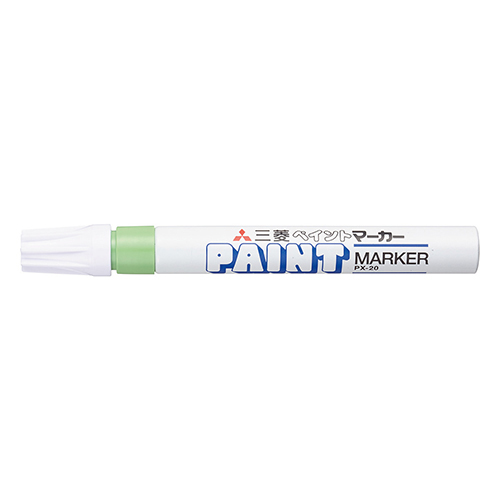 ・固着性、速乾性、発色性に優れた機能型性。 ・金属、ガラス、プラスチックなどへの筆記に最適で、不透明インクなので、黒の上でも鮮やかに発色します。 [色]黄緑 [サイズ]軸径15.0×厚さ15.0×全長142.0 [材質](軸)アルミ、(ペン先)アクリル繊維 [備考]中字丸芯 [重量]21.8g