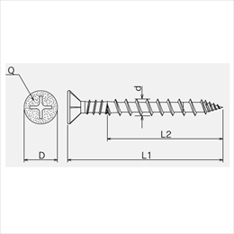 [サイズ]d:3.8、L1:25、P:2.40、L2:16、D7.5、Q:2番 [ネジ山/先端形状]粗め/特殊形状 [箱入数]580本