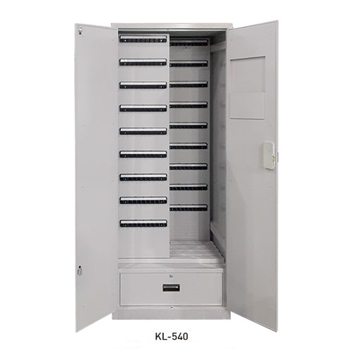 ・大量の鍵を一括収納・管理が可能となります。 ・キーを持ち歩く必要のないテンキー式を採用しました。 ・テンキーはお客様が自ら決めた暗証番号で施開錠が行えます。 ・暗証番号はお好みの1〜6ケタの番号で利用できます。万が一暗証番号を忘れた場合には、非常解錠キーで解錠可能です。使用者はキーを持ち歩く煩わしさから解放され、管理者はキーの紛失などのトラブルから解放されます。 ・設置場所を選ばない電池式です。 [材質]スチール [仕上げ]メラミン焼付塗装 [色]ライトグレー [サイズ]H1790×間口700×奥行450 [重量]98kg [備考]540個用
