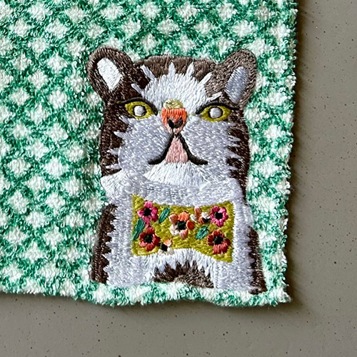 丁寧なハンドメイドの刺繍がかわいいタオルハンカチ。
