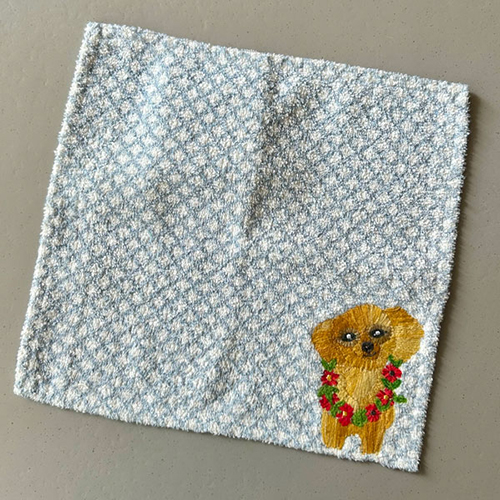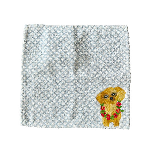 丁寧なハンドメイドの刺繍がかわいいタオルハンカチ。