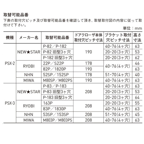 ・ストップ付き・ストップ無し 兼用 ・他社メーカー数種類のドアクローザーを同じ取付ネジ位置で交換可能。 ・取付穴隠しシールで余分な取付穴を隠せます。