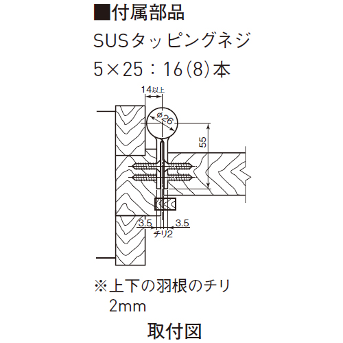 ●上下の羽根のチリ寸法:2mm
