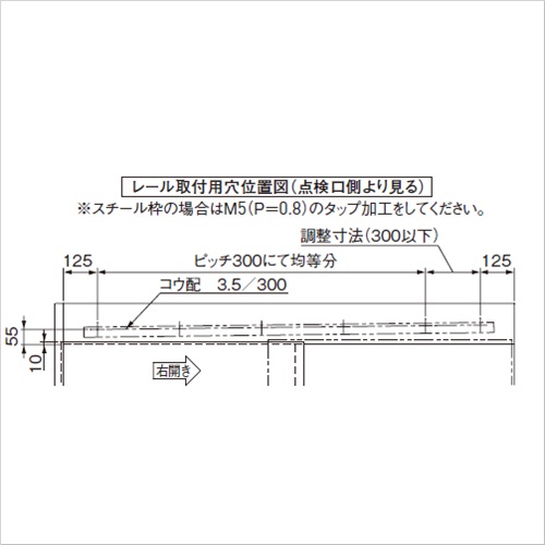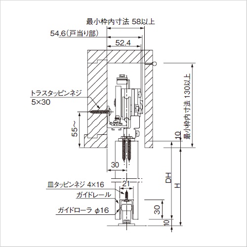 ・長寿命 制動装置は流体摩擦抵抗方式、ワンウェイクラッチ機構を採用し、確実な制御・小型・長寿命を実現しました。 ・軽い開扉力 扉抵抗が小さいため、お年寄りやお子様、身体の不自由な方でも軽く扉を開けられます。 扉質量30kgにおける初動開扉力 水平式 AN-CW60Vタイプ・・・6.9N 傾斜式 AD-CW30V・60Vタイプ・・・6.1N ・簡単施工 枠側への加工はレール取付穴のみとし、部品は全てドライバーと付属の六角で取付ができるので、簡単に施工が行えます。 ・左右兼用 簡単な操作で左右の開き勝手が変更できます。 ・用途 住宅・病院・学校・介護福祉施設等。 引込バネいらずで低コストなレール傾斜式上吊り式引き戸で床面をバリアフリ-にできます。 木建軽量建具仕様として必要な部品を標準装備しています。 制御装置は流体摩擦抵抗方式、ワンウェイクラッチ機構を採用し、確実な制御と長寿命を実現。 また、簡単操作で左右の開き勝手の変更が可能です。 プラス(+)ドライバーと付属の六角レンチで施工が可能です。 ガイドレール、ガイドローラ付。 ●適用扉:質量:10〜30kg 幅:600〜1200mm ●レール長:2.2m ●初動開扉力:2.3〜6.1N ●制動装置型式:SC-C03V ●仕様 最大ストローク:1500mm 閉駆動方式:レール傾斜(3.5/300) 制動方式:流体摩擦抵抗型 閉じ時間設定範囲:7〜11秒(開扉900mmから全閉までの閉じ時間) 使用温度範囲:-10〜40℃ 耐久性:開閉50万回以上 【ご注意】ガイドローラは必ずご使用ください。ハンガー取付用の六角タッピンネジが付属されています。