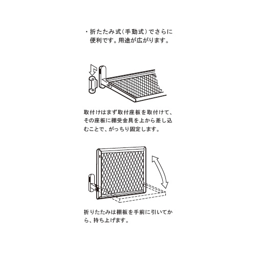 折たたみ式(手動式)でさらに便利です。用途が広がります。 [サイズ]246mm×307mm [本体重量]0.3kg [材質]ステンレス [仕上]研磨 [耐荷重]5kgf