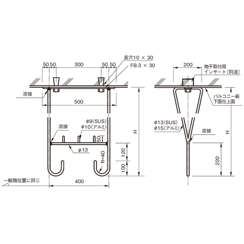 特注サイズ(高さ寸法H1001mm以上)については、別途対応いたします。お問い合わせください。(高さH781mm以上は、FBがt=4)
