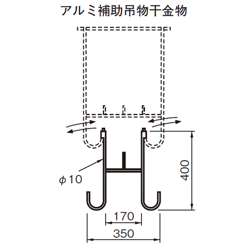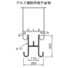 アルミ補助吊物干金物(別売)の取付けは、本体のフック部に差込むだけです。