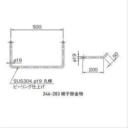 機構(公団)住宅AE-333仕様としてご使用いただけます。 SUS大型屋根マンホール 900×900、外部手すり、2連スライド梯子フック付、梯子掛金物をそれぞれご用意できます。 [サイズ]500x19x200mm [本体重量]2250g [材質]SUS304 [仕上]ピーリング 【ご注意】納期:受注生産となります。