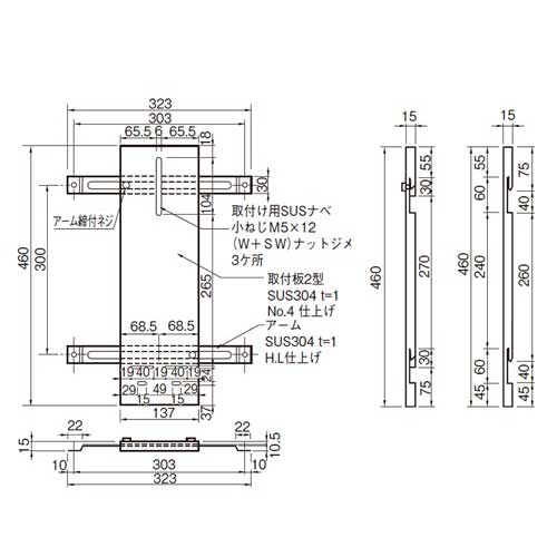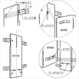 湯沸器の木部への取付けは火災防止上危険です。 本商品は火災の危険がなく、しかも、しっかりと簡単に取付けられます。 [本体重量]70g [材質]SUS304 [仕上]ヘアーライン