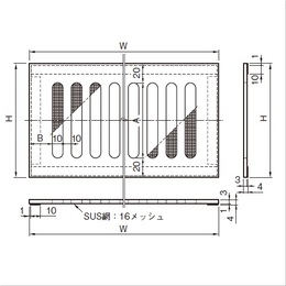 [サイズ]300x120x3mm [本体重量]650g [材質]SUS304 [仕上]サテン研磨 ●有効換気面積:65平方センチメートル 【ご注意】特注サイズ製作可能です。(穴ピッチ考慮必要)