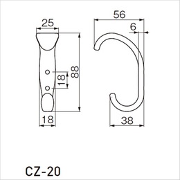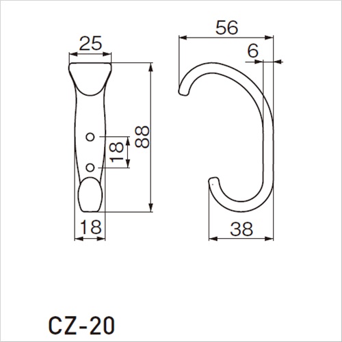 [サイズ]H88mm、W25mm、D56mm、P18mm [本体重量]94g [付属品]スチール十字穴付半丸風タッピンネジ A3.5×20:2本 [材質]ZDC [仕上]Nブラック ●耐荷重:上20kgf、下20kgf