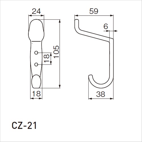 [サイズ]H105mm、W24mm、D59mm、P18mm [本体重量]106g [付属品]スチール十字穴付半丸風タッピンネジ A3.5×20:2本 [材質]ZDC [仕上]Nブラック ●耐荷重:上10kgf、下20kgf