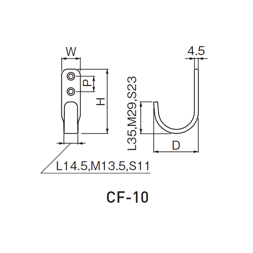 [サイズ]H65mm、W18mm、D43mm、P15mm [本体重量]78g [付属品]スチール十字穴付丸皿木ネジ 3.1×22:2本 [材質]スチール [仕上]Nブラック ●耐荷重:20kgf