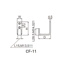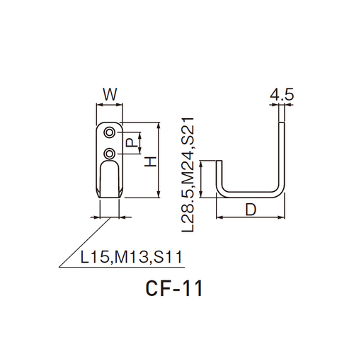 [サイズ]H45.5mm、W15mm、D39.5mm、P12mm [本体重量]41g [付属品]スチール十字穴付丸皿木ネジ 3.1×16:2本 [材質]スチール [仕上]Nブラック ●耐荷重:25kgf