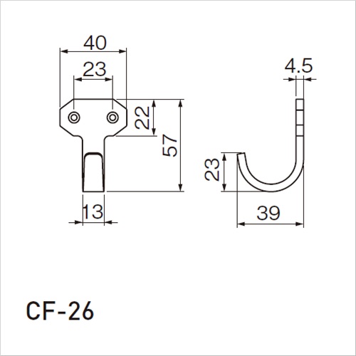 [サイズ]H57mm、W40mm、D39mm、P23mm [本体重量]57g [材質]スチール [仕上]Nブラック ●耐荷重:20kgf