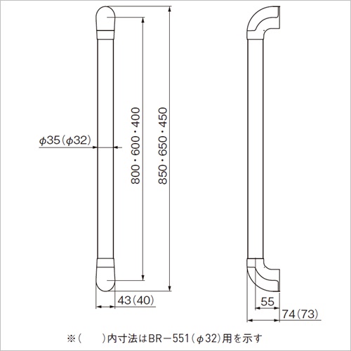 BR-550はBL認定品です。 [色]AG・ライトオーク [サイズ]Φ35mm×600mm [本体重量]910g [付属品]BR-550(φ35)スチール十字穴付皿木ネジA形4×40:6本 [材質]タモ集成材・亜鉛合金 ●耐荷重取付ピッチ910以内:120kgf