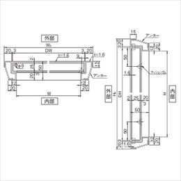 [サイズ]H600×W600mm [外寸法]H2:664×W2:664mm [本体重量]9000g [材質]溶融亜鉛メッキ鋼板 [仕上]サッシプライマー [吊元]右