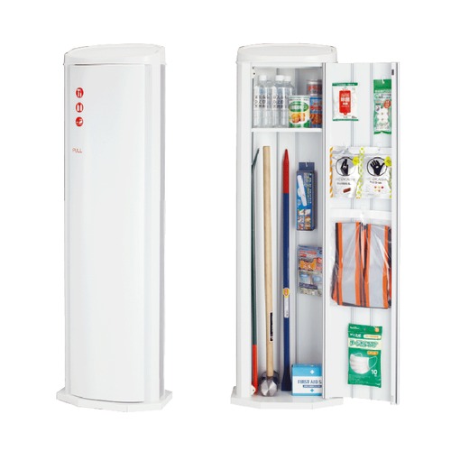 ・オフィスでの災害に備えて、オフィスからの脱出や救助活動のための初期対応用具や災害直後に必要な用具を収納します。 ・ピクトシールが付属になります。 ・鍵なしタイプになります。 [色]ポリッシュホワイト [品番/呼称]MDP-300W [サイズ]W400mm、H1305mm、D275mm [重量]17kg [材質]スチール・アルミ [ご注意] ・ボックスのみの販売となります。 ・中身は別途ご用意ください